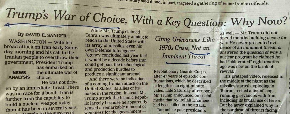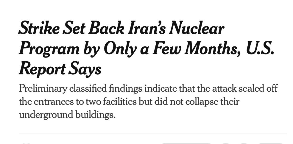 Yet back in June 2025, the Times marshaled six of its biggest star bylines—plus “David E. Sanger contributed reporting”—for a front-page story claiming, “A preliminary classified U.S. report says the American bombing of three nuclear sites in Iran set back the country’s nuclear program by only a few months, according to officials familiar with the findings. … The report also said that much of Iran’s stockpile of enriched uranium was moved before the strikes, which destroyed little of the nuclear material. Iran may have moved some of that to secret locations.”
