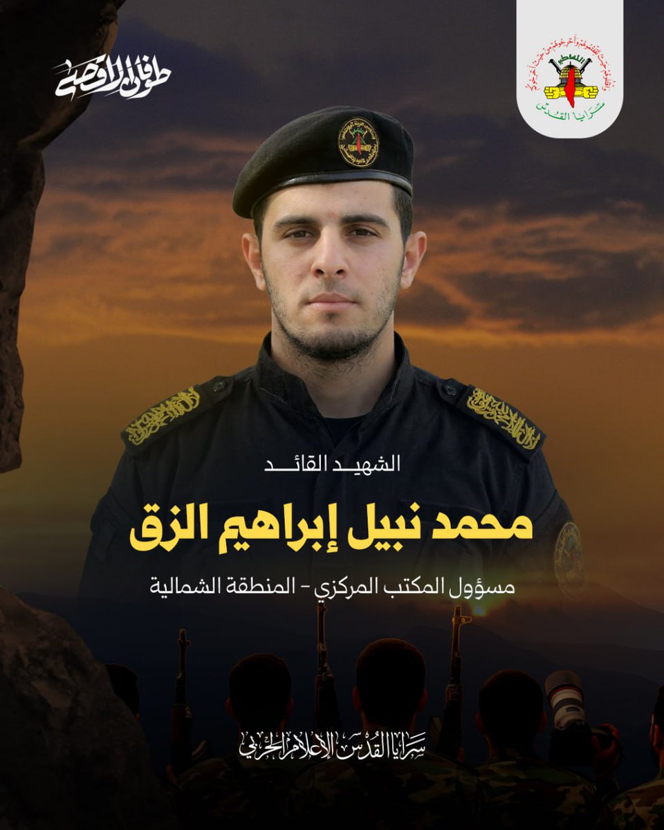 Mohammed Nabil Ibrahim al-Zaq (ID#: 400208245, age 29), listed as a journalist for the PIJ-affiliated al-Quds Today TV, was previously known to be a PIJ fighter. This announcement confirmed him as the Head of PIJ’s Central Bureau in the Northern Region. al-Zaq was killed in a November 2023 airstrike.
