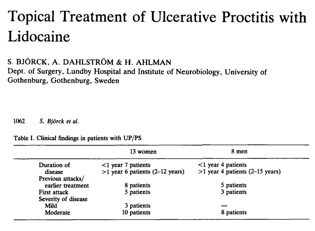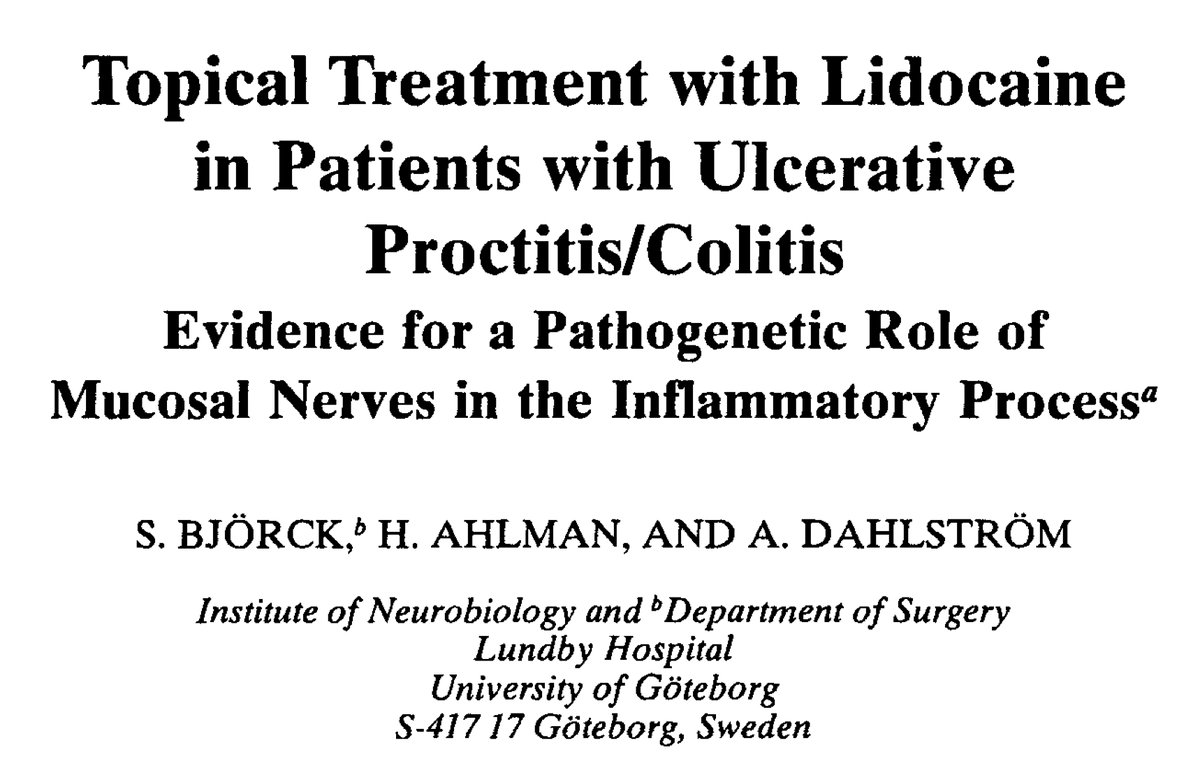 “A new paradigm for the treatment of ulcerative colitis has recently been presented: Treatment of the mucosa with lidocaine (2%) enemas for prolonged periods.”