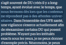 @MathieuMolimard 5/ Et enfin, dans le Quotidien du Médecin, la Présidente des doyens de facs de médecine @ConfDoyensMed assure que désormais il n'y a plus ou n'y aura plus aucun diplôme universitaire charlatanesque dans les facs de médecine.