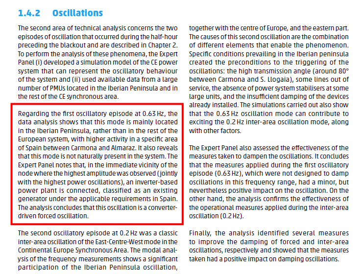 Il fenomeno è descritto come oscillazione forzata e localizzata nell’area iberica. La presenza di generazione inverter-based viene indicata come elemento rilevante nell’origine della perturbazione e nella sua capacità di propagarsi nella rete elettrica. ⬇️