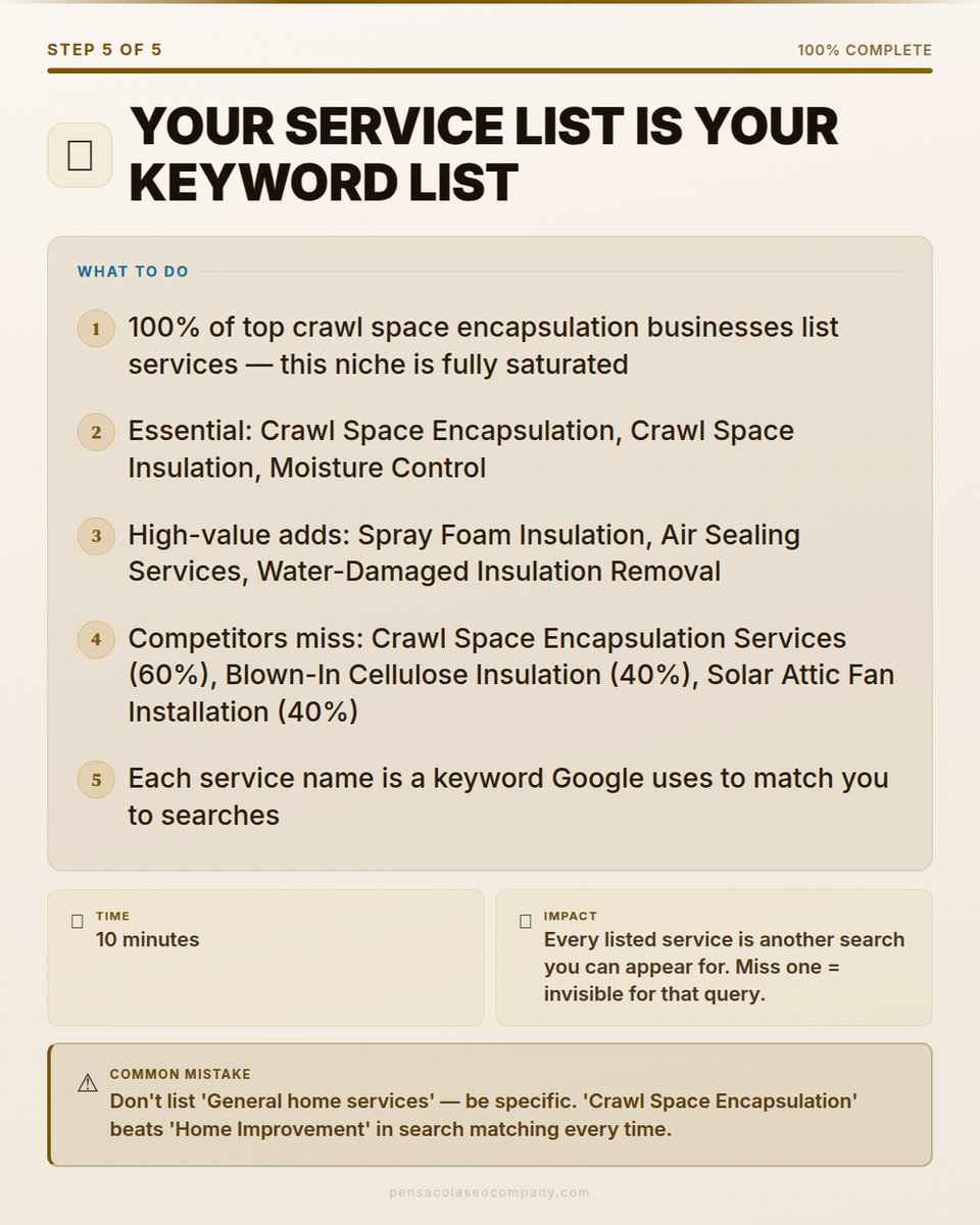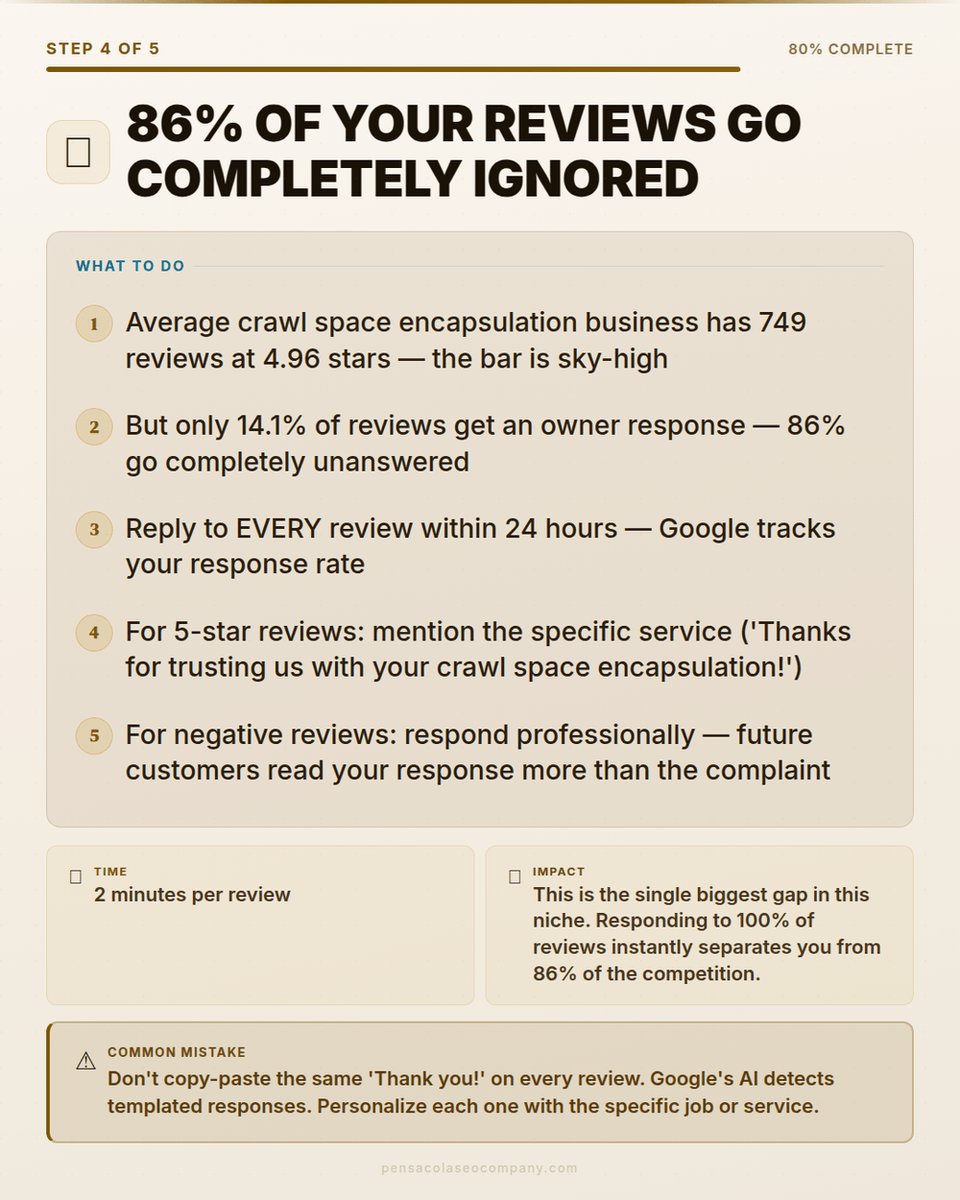 86% of crawl space encapsulation reviews go completely unanswered. That is the single biggest competitive gap in any niche I have analyzed — and it costs nothing to fix 🧵👇
