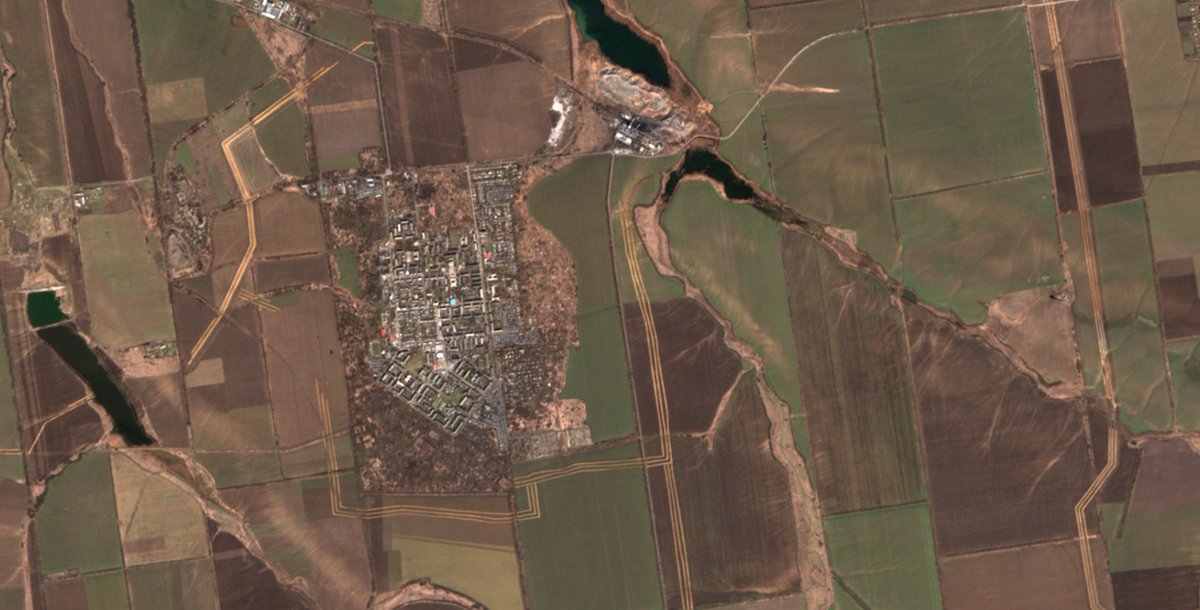 This satellite image from today is showing the ongoing construction of a ring defense for Vassylkivka.