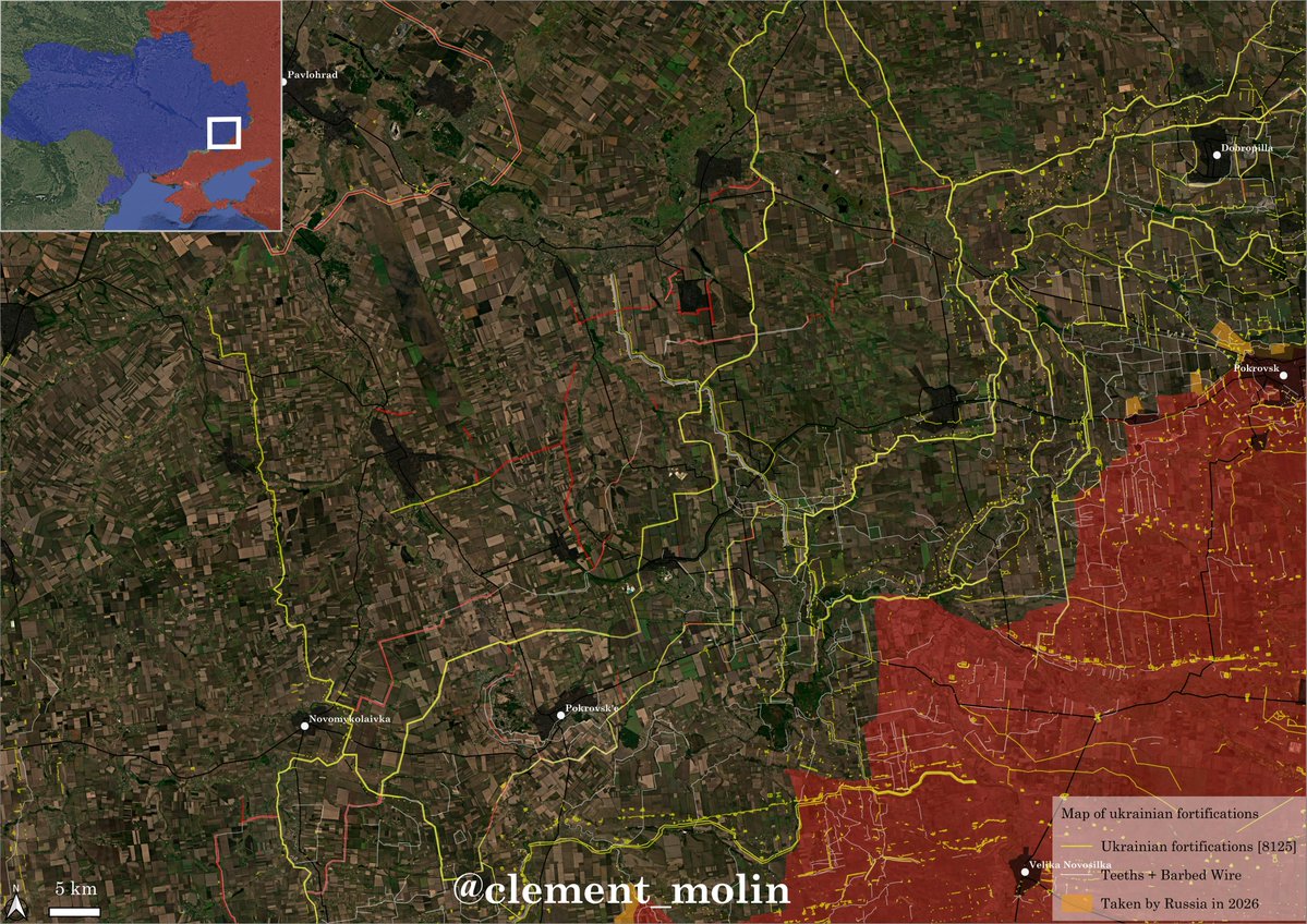 In this direction, 4 lines are under construction/improvement and 4 ring defenses are under preparation for Pokrovsk'e, Vassylkivka, Pavlohrad and Shakhtarske. Image