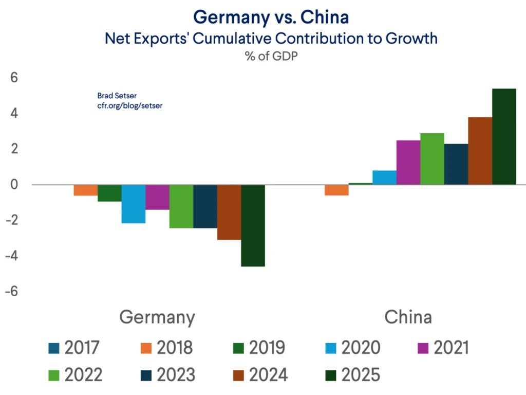 Consider the contribution of net exports to Chinese growth and to German growth over the last few years ...