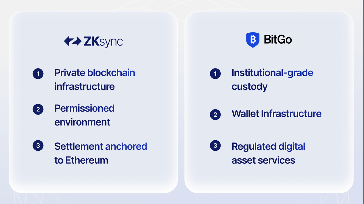 ZKsync × @BitGo partner to deliver a production-ready solution for tokenized deposits, combining secure custody with private, compliant blockchain settlement.