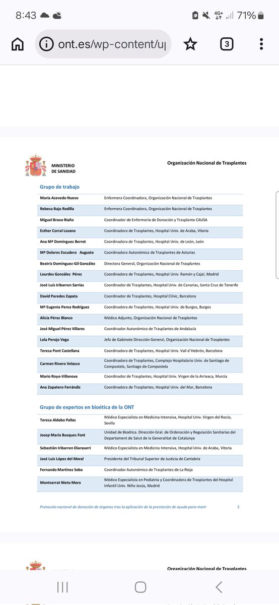 @TucaAlbert @Dmdcatalunya La Organización Nacional de Trasplantes ha creado recientemente un protocolo para la obtención de órganos tras la práctica de una eutanasia. Josep María Busquets Font, secretario de la Comisión de Garantía y Evaluación, participó en su elaboración.