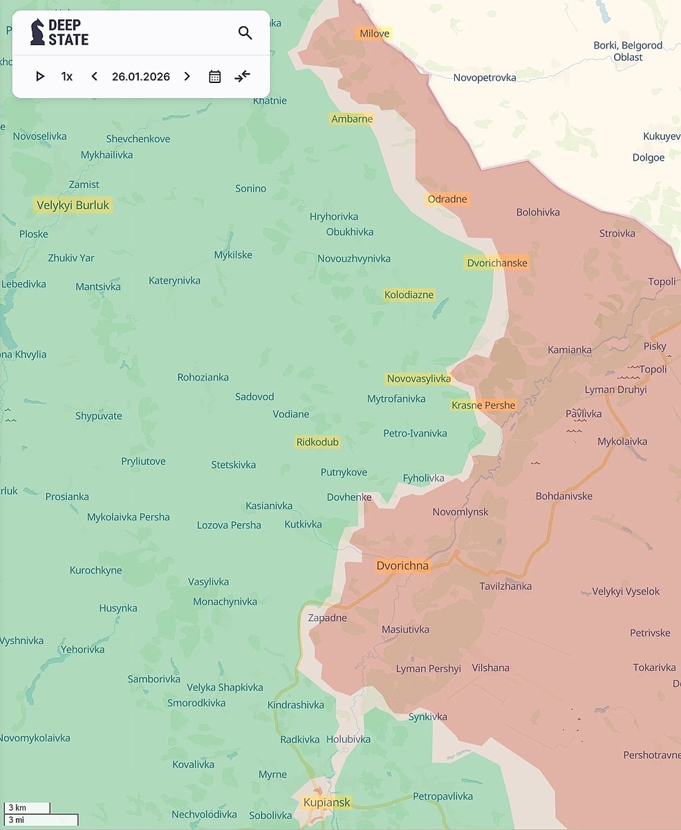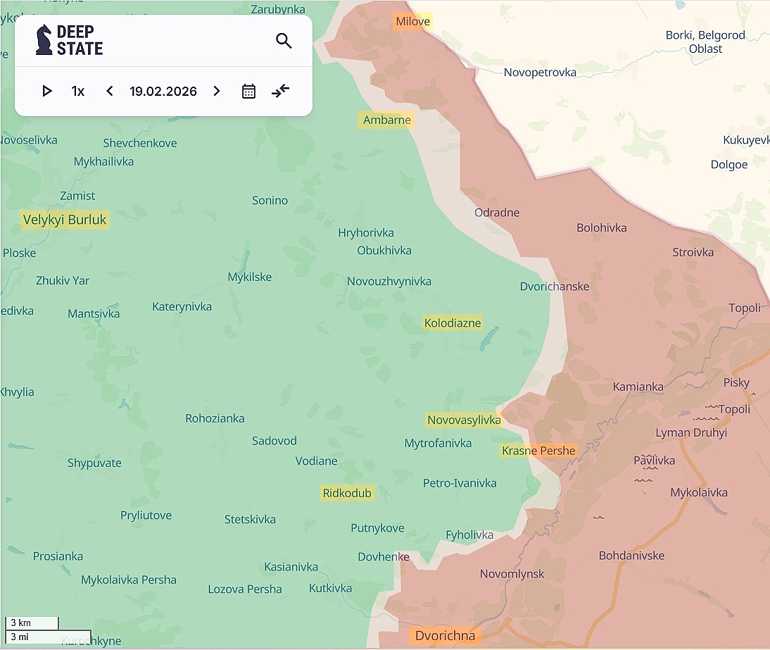 In the Velykyi Burluk direction, despite initial gains of 7–7.5 km, RuAF advance toward Velykyi Burluk from Milove and the Oskil bridgehead has stalled due to overextension across a vast front and forced diversion of forces to Kupiansk.