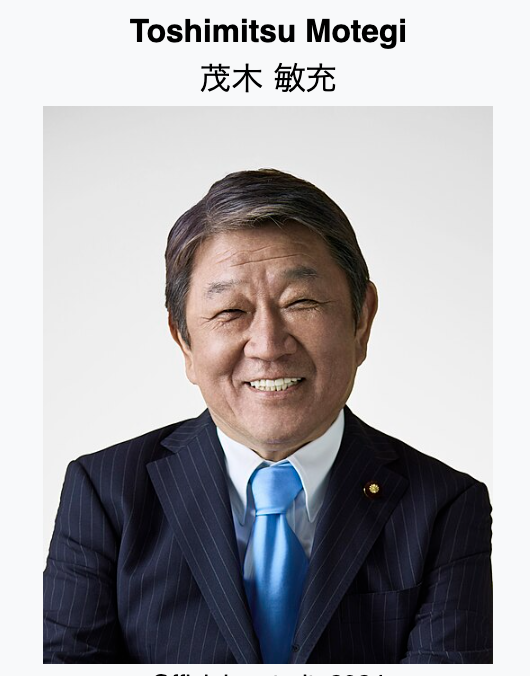 Foreign Minister #2: Toshimitsu Motegi (2019–2021), and now again since 2025, has good relationship with President Trump.