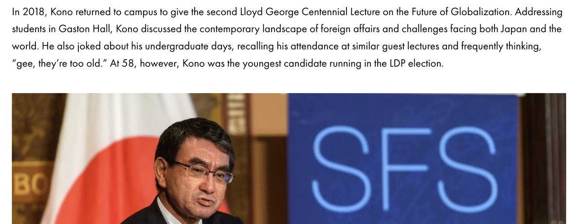 Kono returned to Georgetown as Foreign Minister in 2018 to give a lecture, while the SSW bill was being drafted.Image