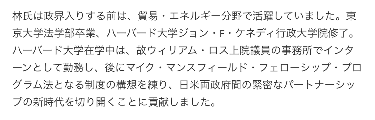 Before Harvard, Hayashi interned inside the US Senate ... for Senator William Roth. While there, he drafted the blueprint for the Mansfield Fellowship Program.