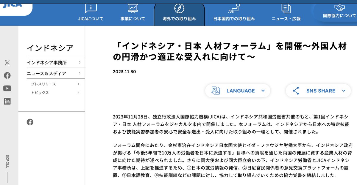 JICA also helped plan for 100,000 Indonesian workers to come to Japan over five years.