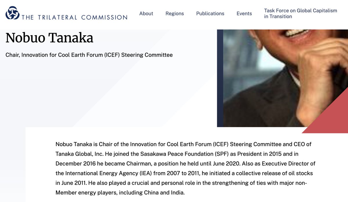 Tanaka also served as Executive Director of the International Energy Agency (Paris, 2007–2011) and as Japan's Minister for Industry & Energy in Washington DC.Image