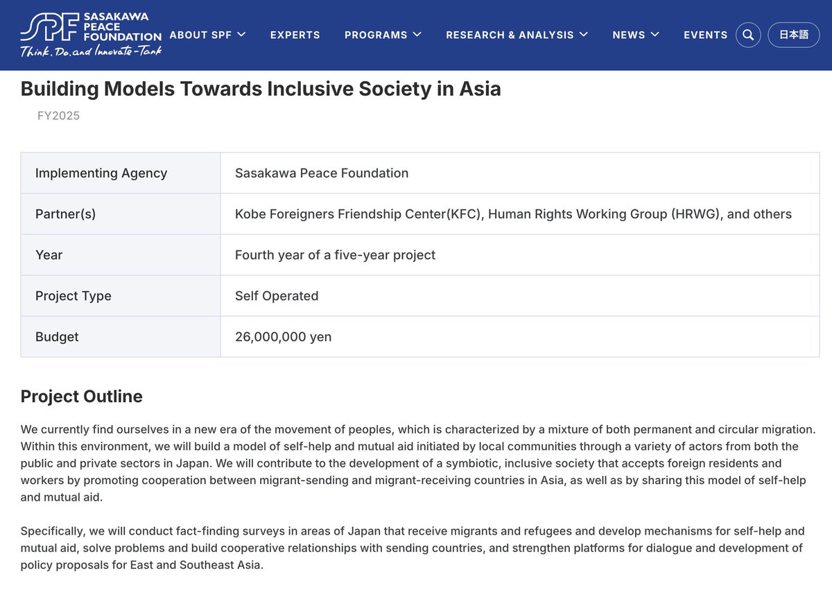 SPF is one of Japan's largest private foundations.