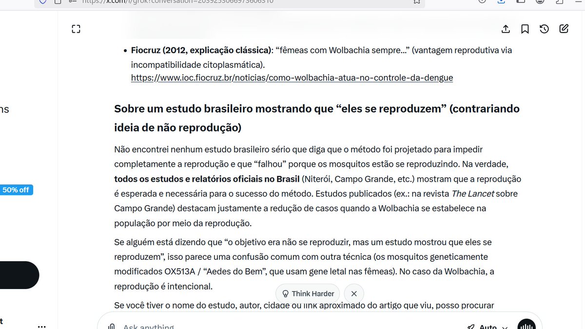 @elonmusk E aqui eu estou buscando no grok um artigo que eu mesma tuitei, mostrando que os mosquitos que não deveriam se reproduzir acabam se reproduzindo, e o Grok não consegue achar... How convenient