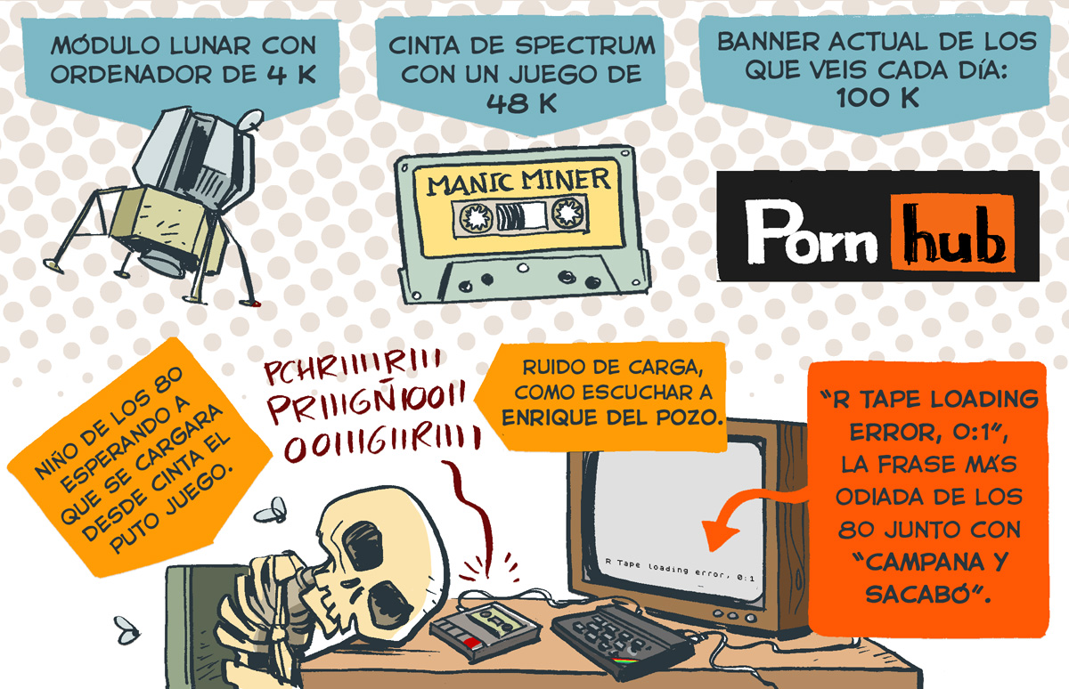 Como no sé si estas cosas siguen disponibles en la web de El Jueves, os dejo por aquí este especial sobre ordenadores de los 80. Son siete viñetitas.