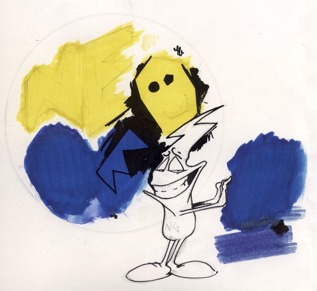 Se me ocurrió diseñar algo parecido a un rayo, usando una expresividad similar a la de los personajes Disney de la época. Que fuese gamberro y dinámico (sigue) Image