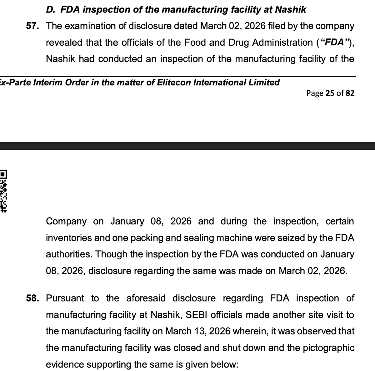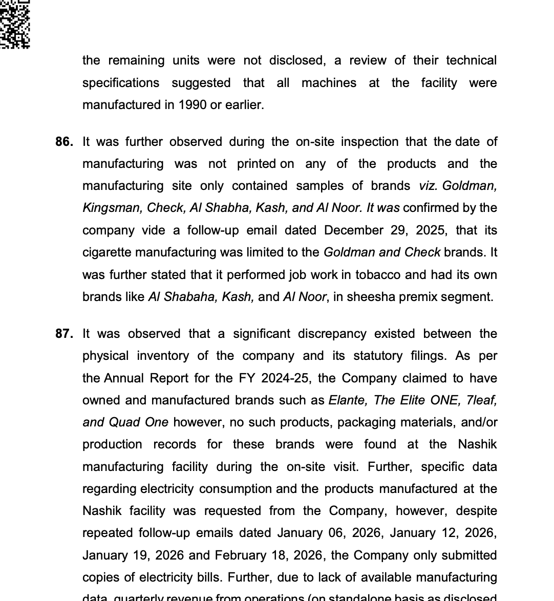 Inspect of Nasik Manufacturing unit revealed it did not have enough resources to the operations of levels of revenue disclosed in financial statements Image