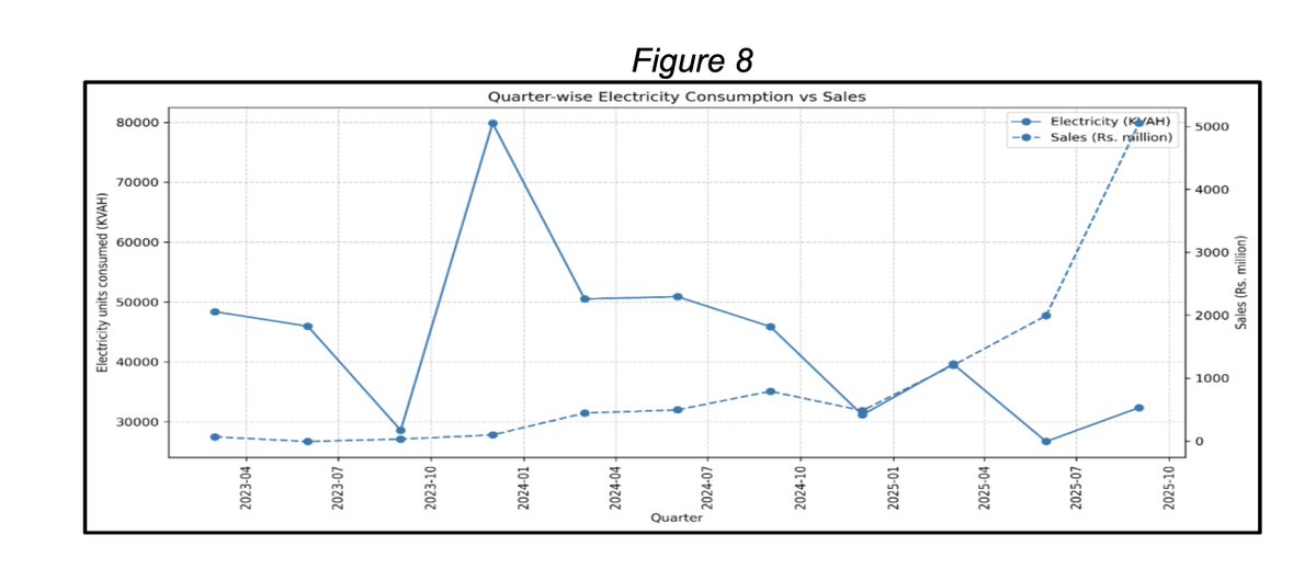 Divergence between reported revenue figures and electricity consumption at the manufacturing facility. The revenue growth recorded in recent quarters was also not consistent with the decreasing trend in electricity consumption at the facility Image
