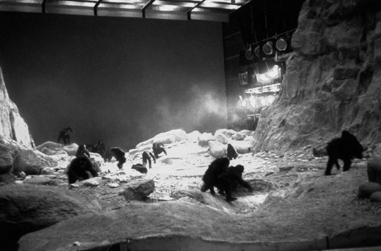 The film was shot mostly at Shepperton Studios and MGM-British Studios in the UK. The only on-location exterior shot was when Moonwatcher invents a weapon. It was shot on an elevated platform allowing Kubrick to get a camera pointing up at Richter.