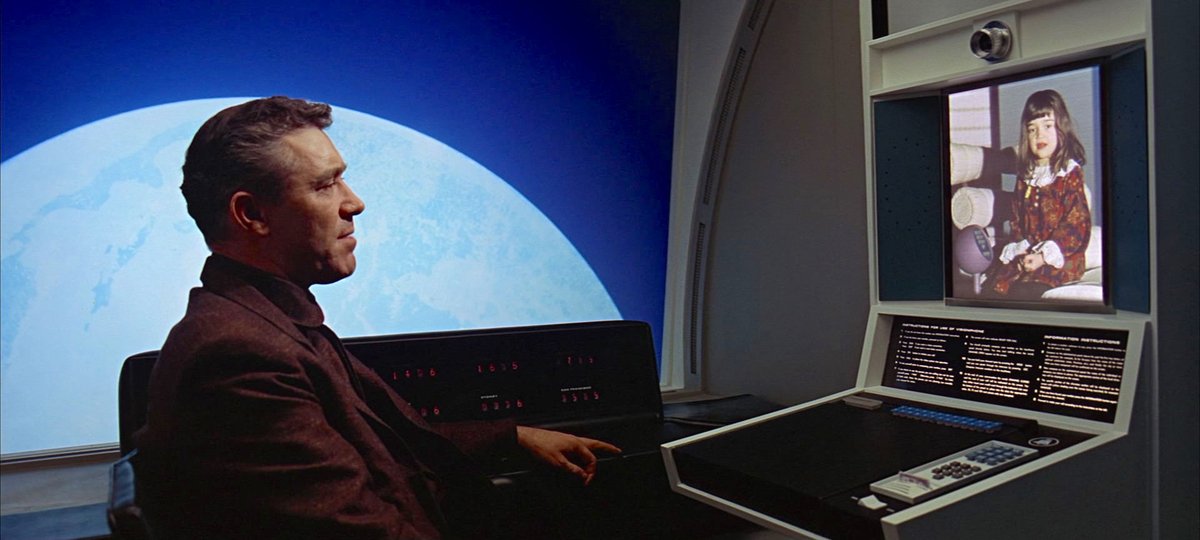We see Floyd make a video call from space to his young daughter, who he calls “squirt.” She was played by Kubrick’s 7-year-old daughter, Vivian. There was a deleted scene where Floyd makes a second call to Macy’s to order the bush-baby his daughter asked for.