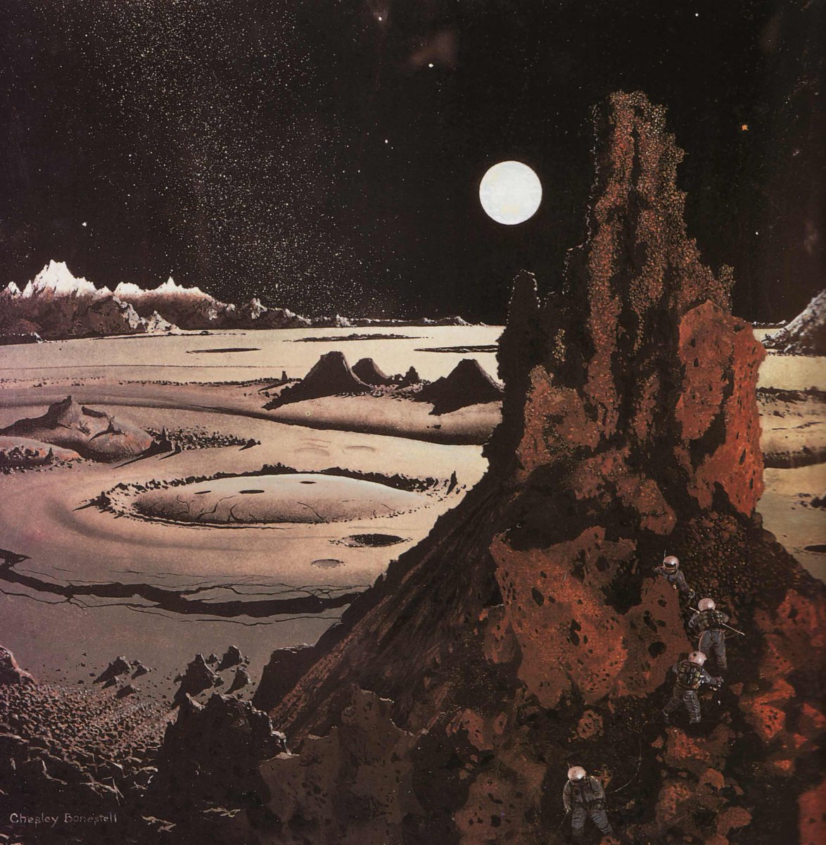 Wanting to avoid the kitsch portrayals of space Hollywood tended to produce at the time, Kubrick brought in illustrators Chelsey Bonestell, Roy Carnon and Richard McKenna to create concept art. Bonestell was known as the “Father of Modern Space Art.”