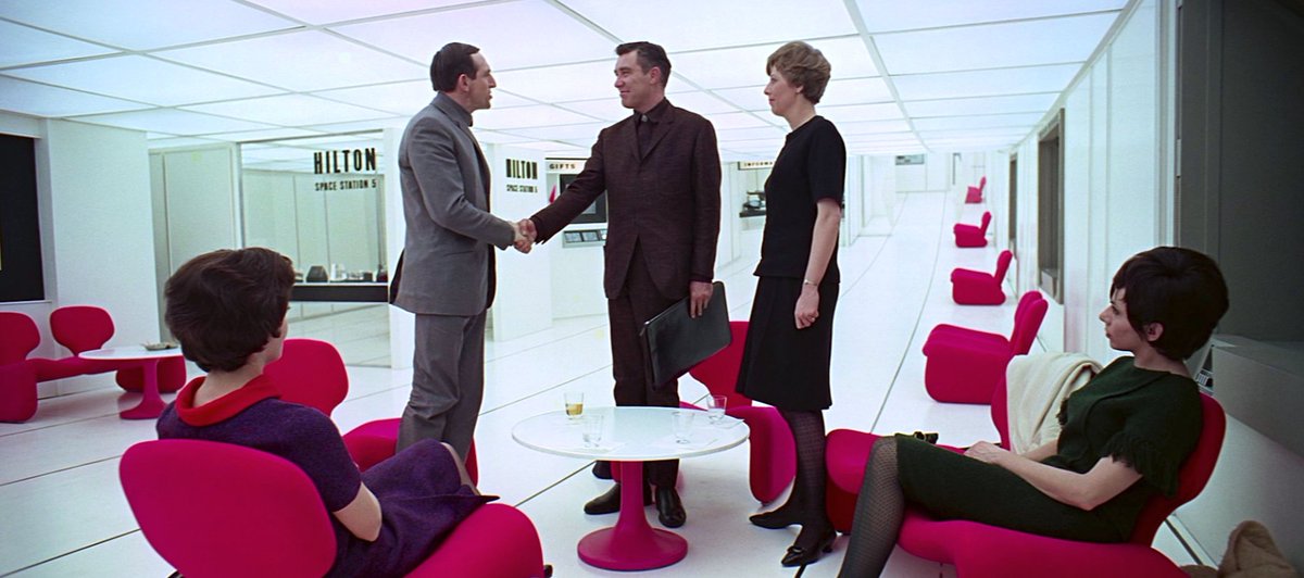 Kubrick wanted realistic costumes so hired Saville Row designer Hardy Amies, who had designed outfits for the Queen. Amies created the look of the space hostess costumes, the civilian costumes, the Space suits – basically everything – and Kubrick signed off on every detail.