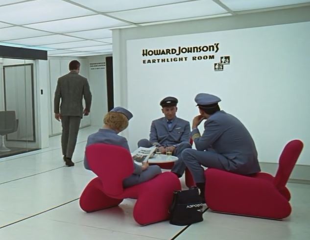 The red-pink Djinn furniture we see aboard the space station became reality too. They were designed by Oliver Mourgue and sold by a company in France called Airborne International, who didn’t actually last too long.