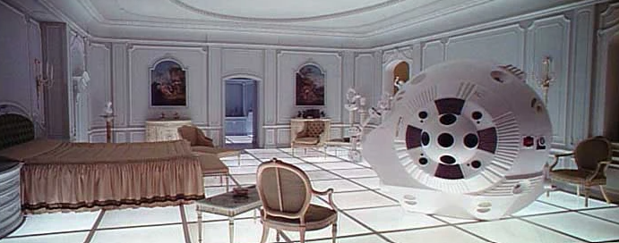 After the stargate, Bowman ends up in a room where he spends decades growing older. The set was designed by production designer Harry Lange. He took inspiration from Louis XVI-style décor.