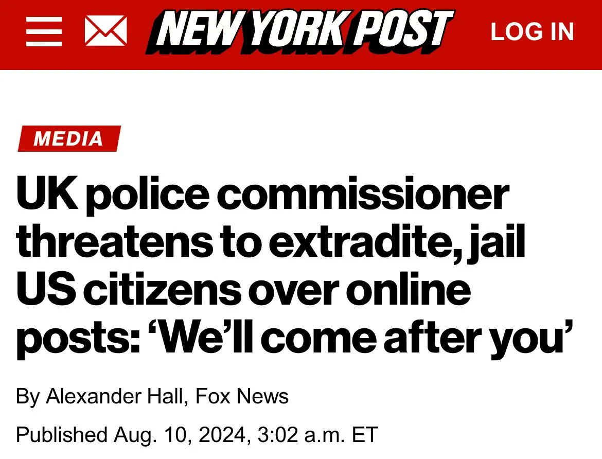 The UK Online Safety Act claims authority over American platforms, American servers, American speech β if a British user can read it, Britain claims it can regulate it.