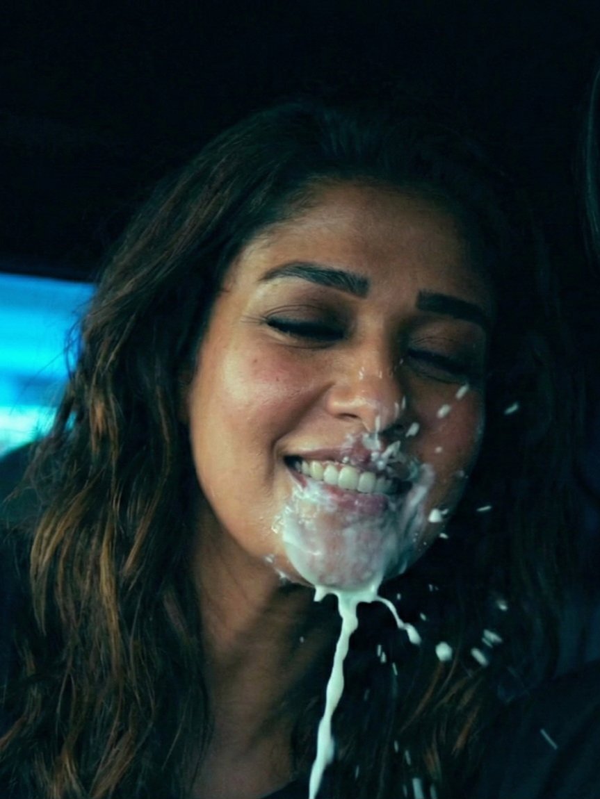 Cum anthaa Nayan face meedha kaarchesaadu, nayan adhi enjoy chesthuu motham cum ni naaki naaki mingesindhi.