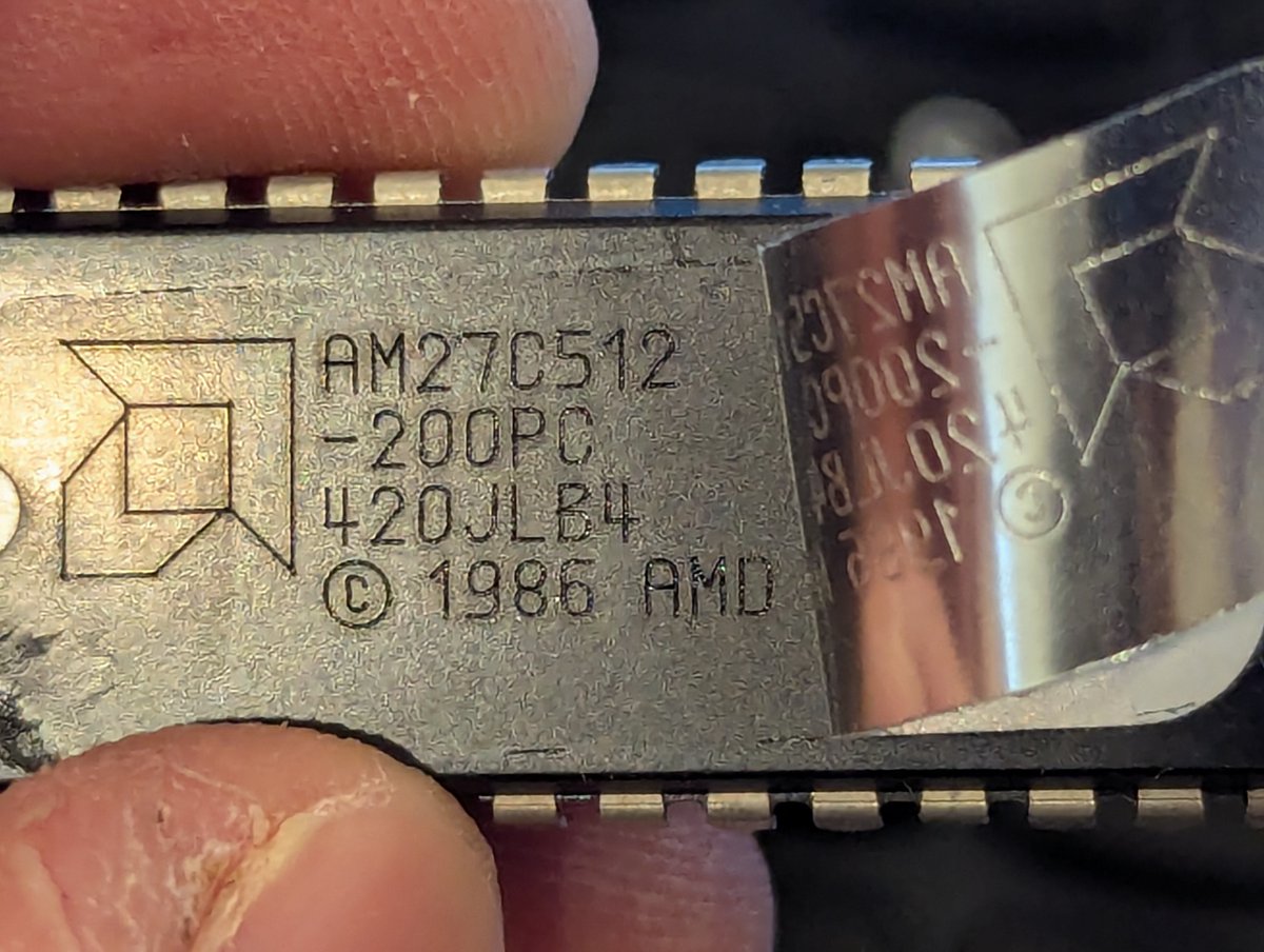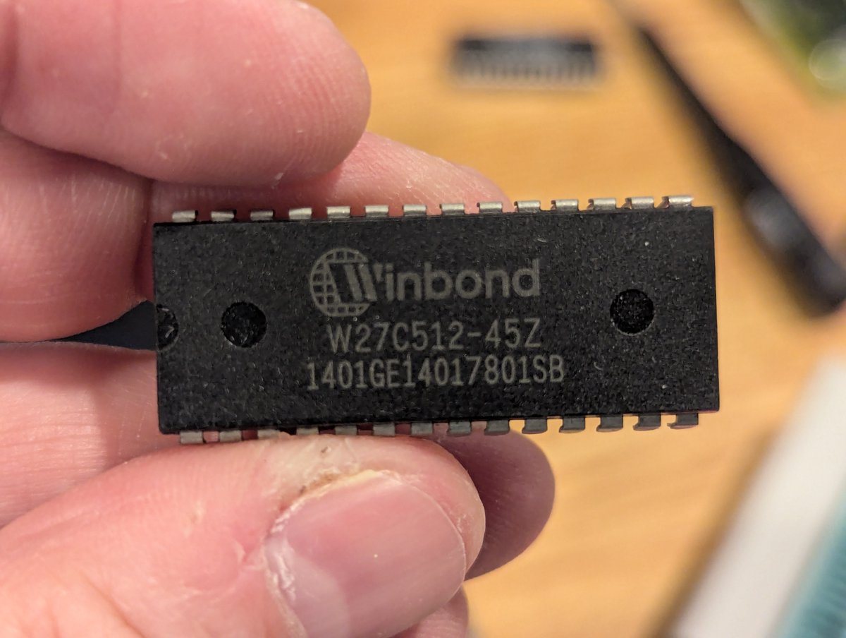 For the curious by the way, this card uses an AM27C512. For my purposes, a Winbond W27C512 or even just a W27C257 is sufficient, since the ROM is only 32KB, I believe.