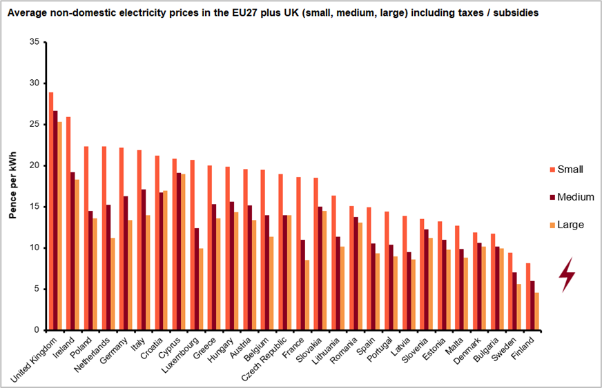 Energy Prices: UK industrial electricity tops the developed world at 26.63p/kWh – 3.5x Canada's cheapest. Domestic prices 2.4x US levels. Gas fares better but still 6x Canada for industry. Nothing to brag about – it's crippling us! (3/11)