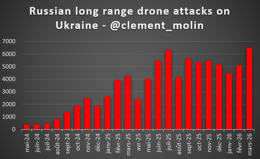 Ukraine first launched 1 000 drones into Russia is august 2024, 3 000 in July 2025 and 7 000 in march 2026 !