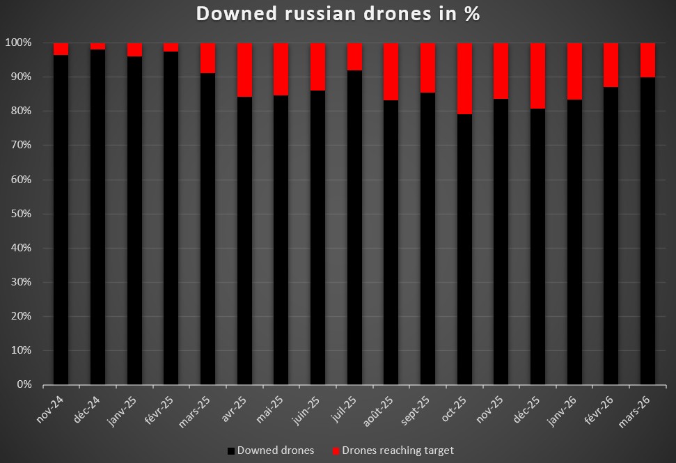 In terms of proportion, after a more difficult period, more and more drones are now being destroyed, with 90% ! in march.