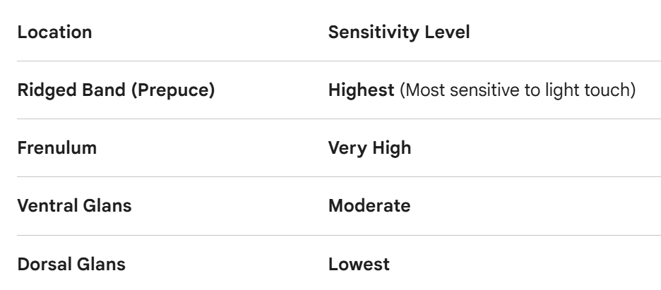 According to this mapping, the five most sensitive areas of the penis are all located on the prepuce. Removing it effectively removes the "fine-tuned" sensory interface, leaving the glans—which is neurologically more similar to a "heel" than a "fingertip"—