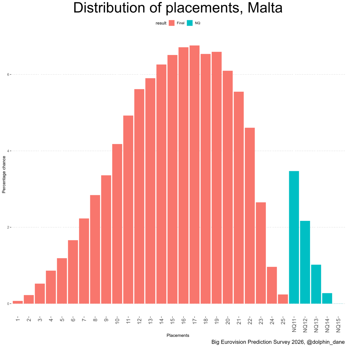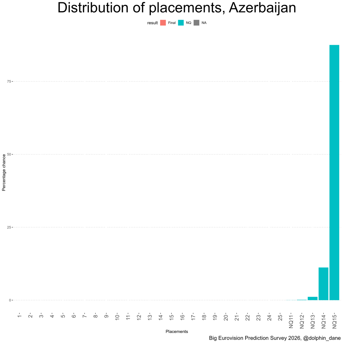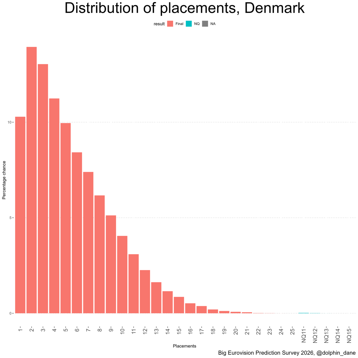 A clear top 3 of 🇩🇰🇦🇺🇺🇦, while 🇲🇹🇨🇾🇦🇱🇨🇿🇷🇴 also look relatively safe. It looks like a tight four-way battle between 🇳🇴🇧🇬🇱🇻🇨🇭 for the remaining two spots, with 🇦🇲 as an outsider. 🇱🇺 looks unlikely but not impossible, while 🇦🇿 receives the worst % in the history of the model Image