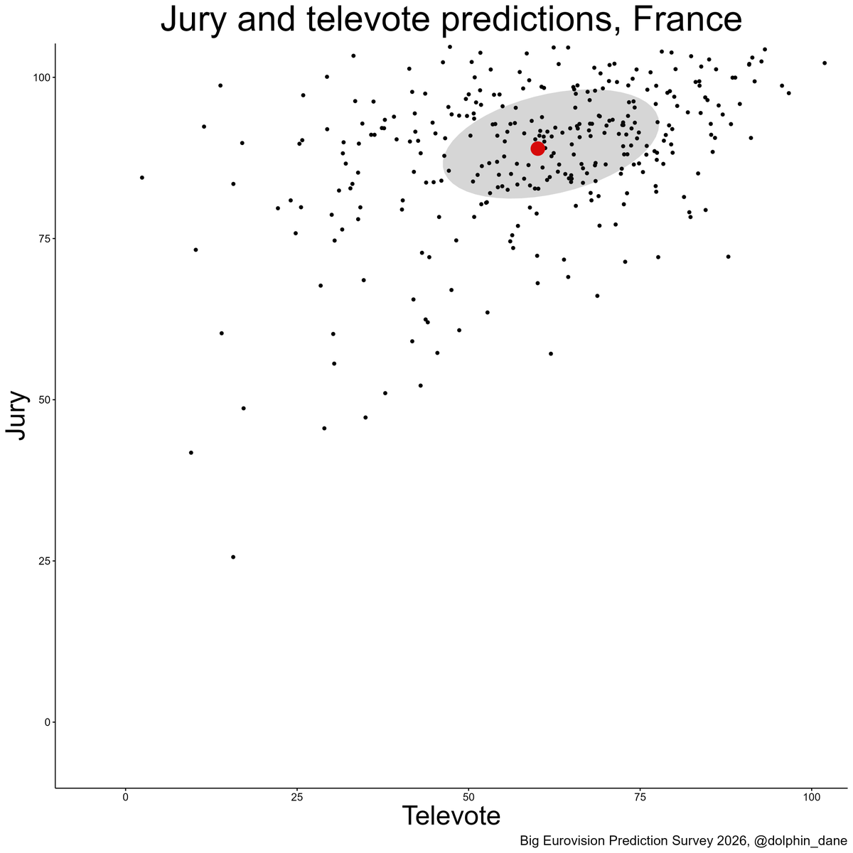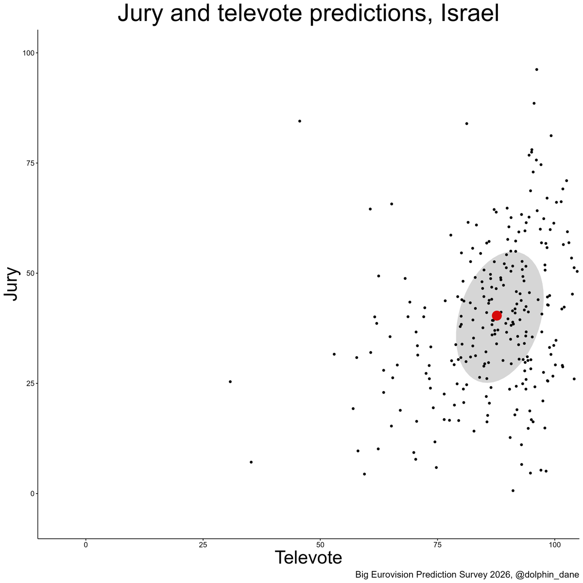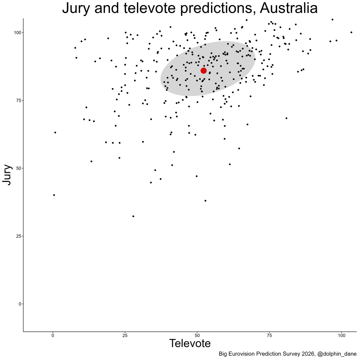 A clear frontrunner, with 🇫🇮 looking like the only country contending for the win in both categories. 🇫🇷🇦🇺 could use a jury win as a springboard, while 🇬🇷🇮🇱 would rely on strong televote showings. 🇩🇰🇸🇪🇺🇦🇮🇹 look like potential compromise winners, if others fail Image