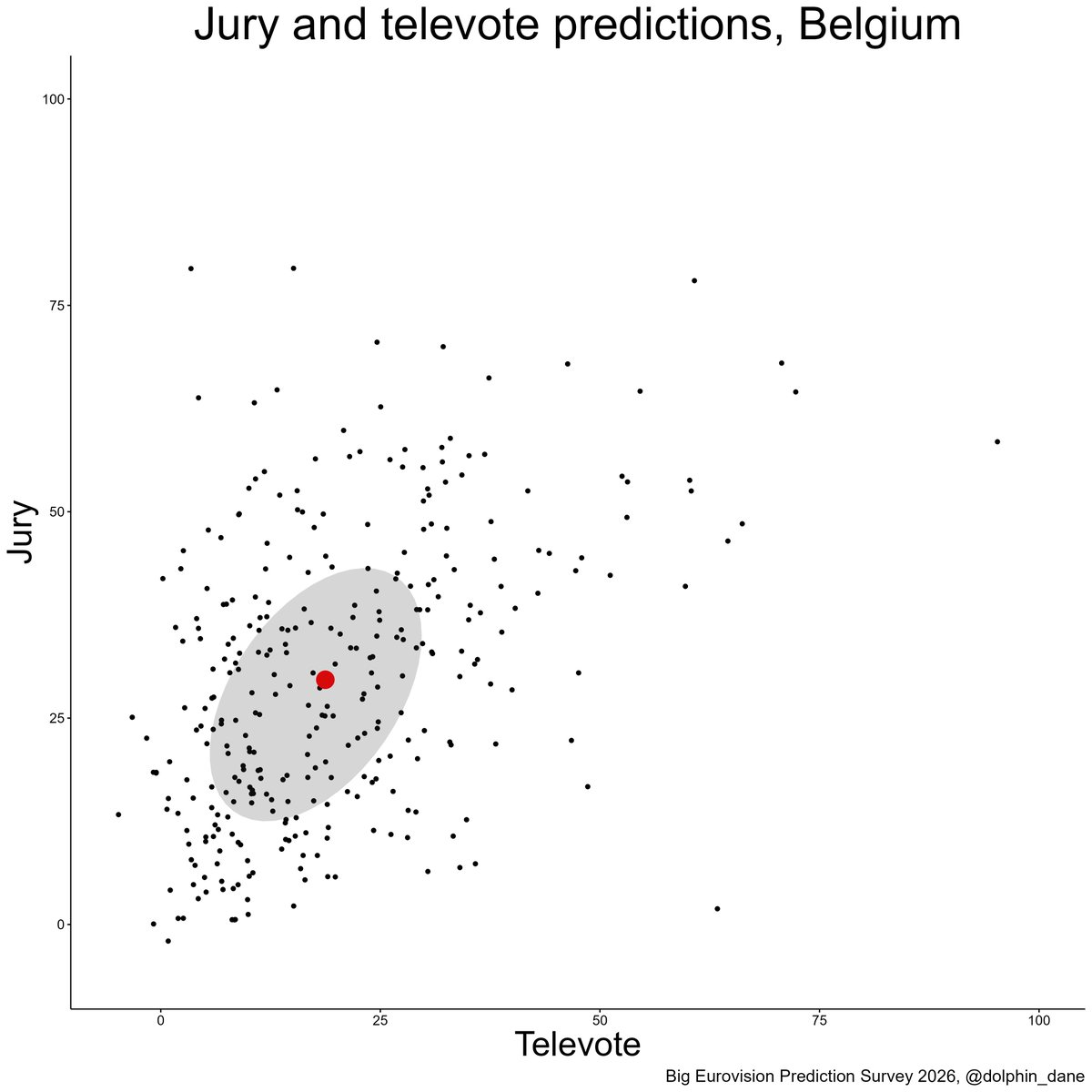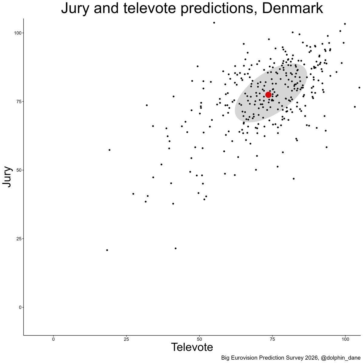 After collecting the predictions of 327 fans and using them to simulate the contest 100000 times in a sophisticated model, here are the results. A full, high detail forecast of the contest based on our collective wisdom (a thread 🧵) Image