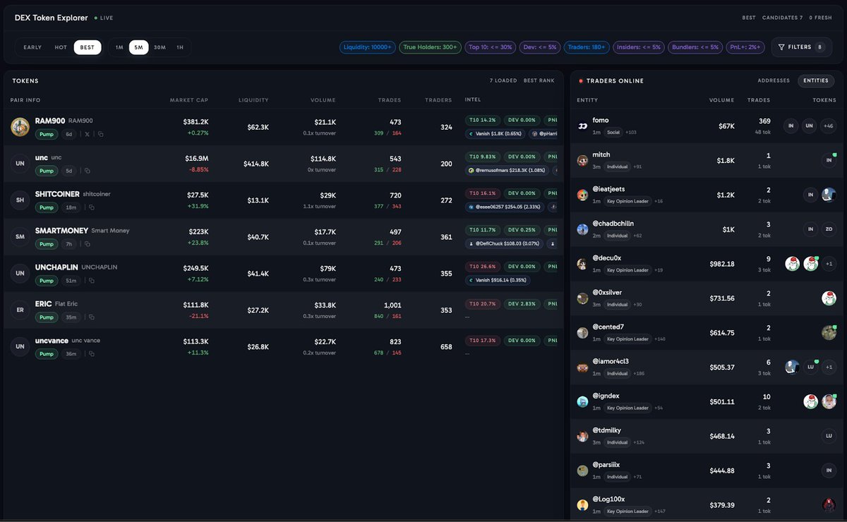 > Track and discover high performing traders by PnL through any token’s live trading page.