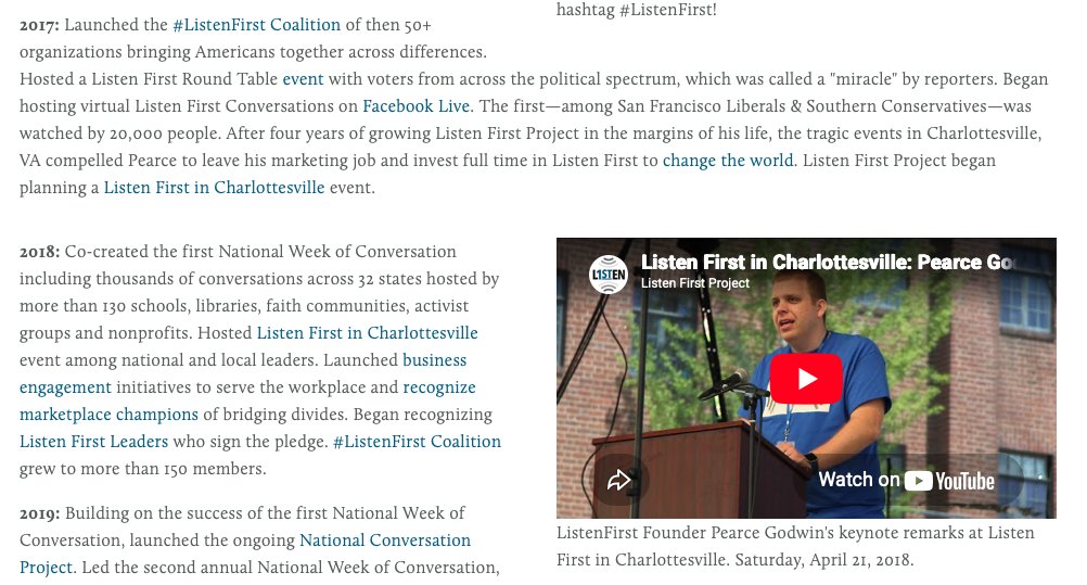 Listen First Project: "The tragic events in Charlottesville, VA compelled Pearce to leave his marketing job and invest full time."