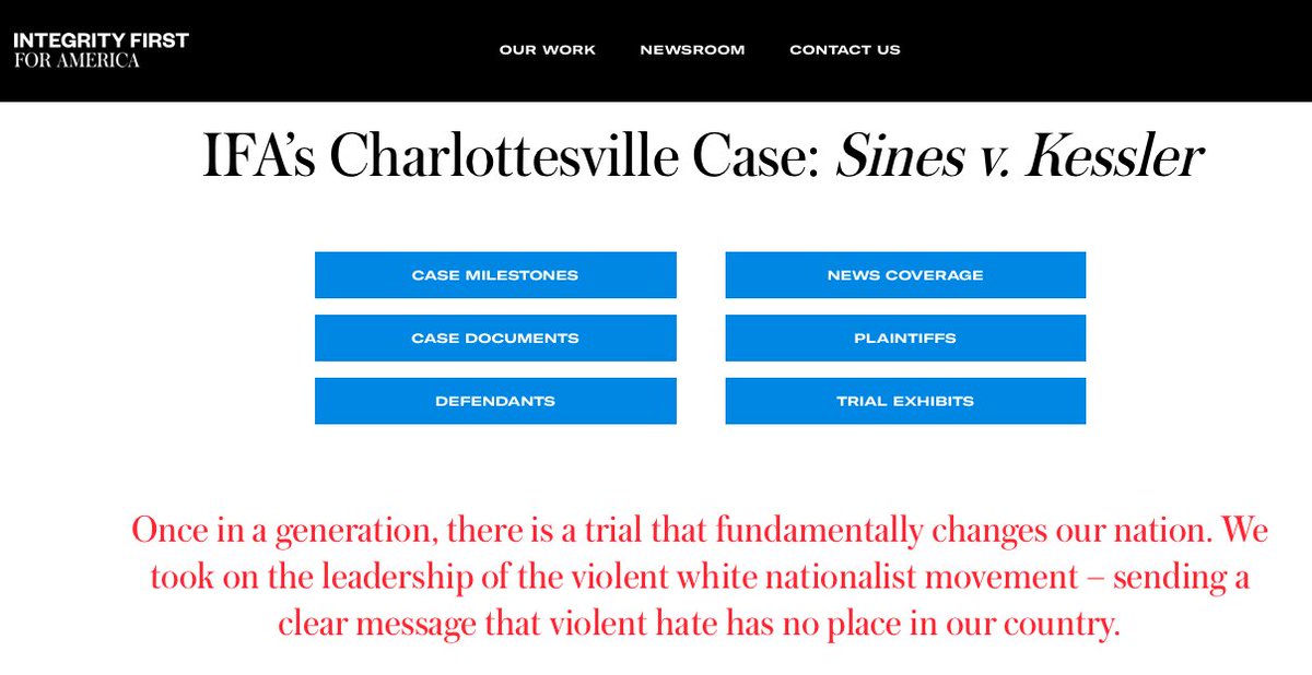 Integrity First for America. Founded 2017. Single purpose: sue the Unite the Right organizers. Backed at founding by LinkedIn's Reid Hoffman ($1M+). Won. Wound down. One event. One lawsuit. One entire organization.