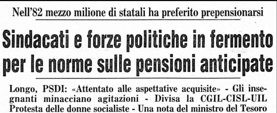 Avrebbe colpito anche i 250.000 andati in pensioni a fine ’82.