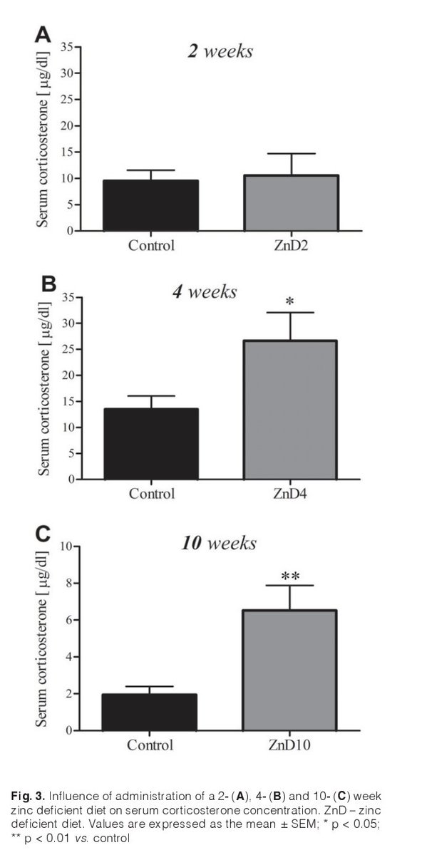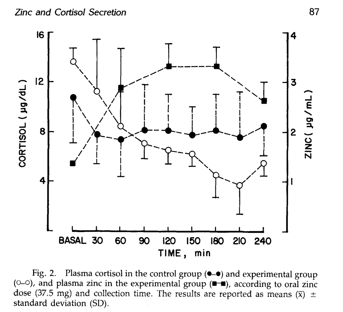 This happens in a time dependent fashion, so here the longer the zinc deficiency persists, the higher the cortisol becomes. Image