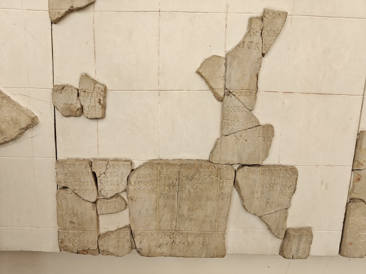 There have been three Cadasters found which indicate the level of administration in the first century AD. The remains indicate the owner, the rent, the price and location of each property. Found together with an inscription of Vespasian