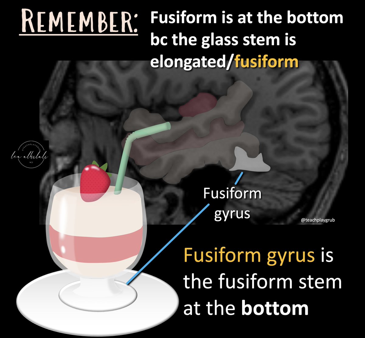 I think the lateral neocortex looks like a parfait—w/the superior, middle, & inferior temporal gyri layered on top of the fusiform gyrus.