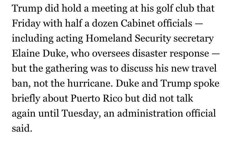 This is the best tick-tock I've seen on White House mgmt of Puerto Rico response. And it is so, so, so damning. 1/ washingtonpost.com/politics/lost-…