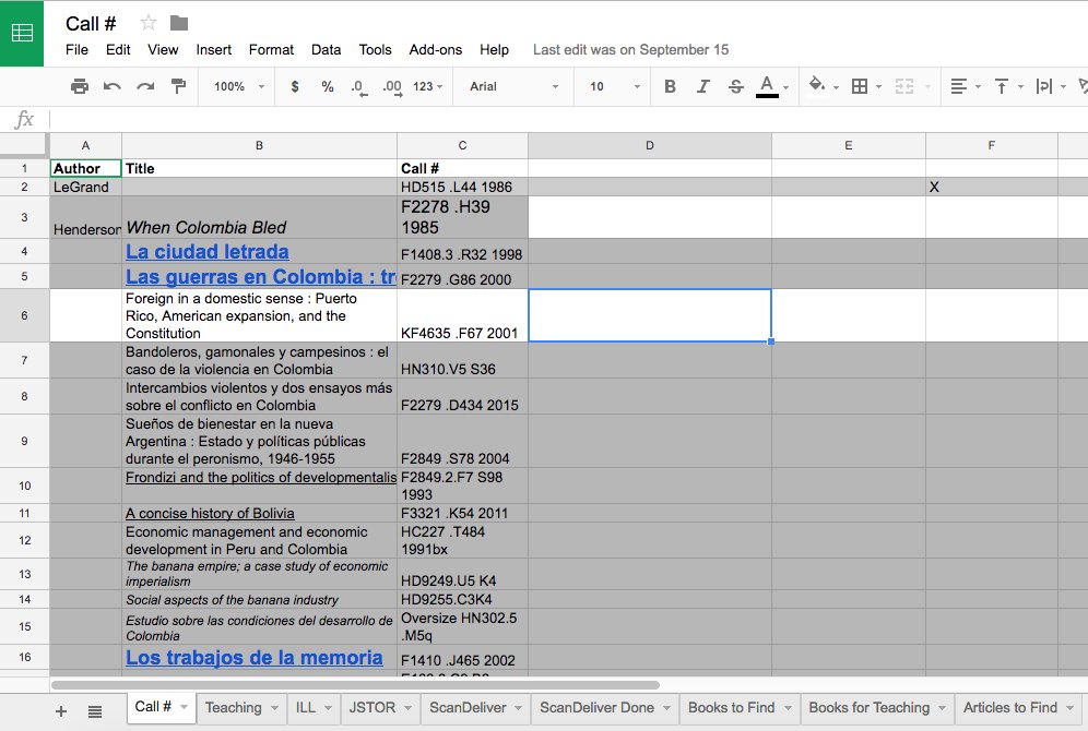 3) I keep track of library books I need in a Google Sheet. Accessible on phone, can sort by call numbers