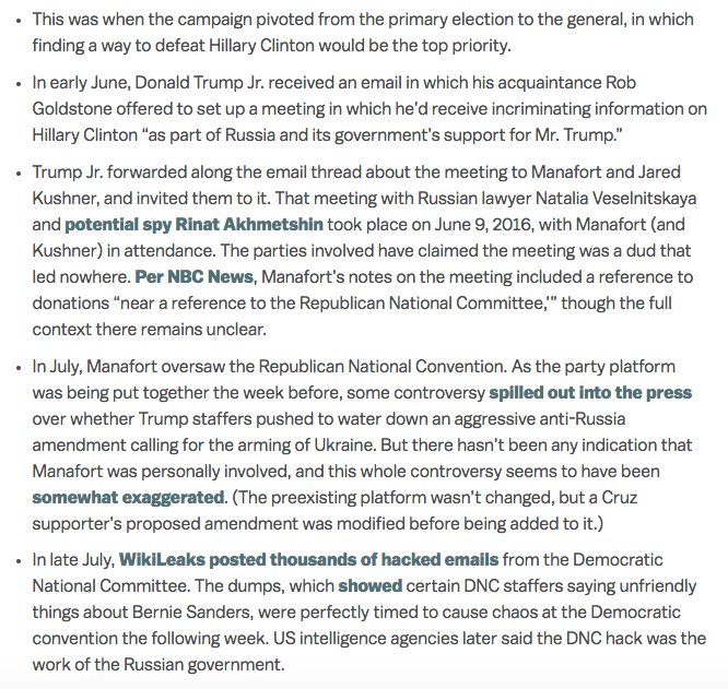 9/ While Manafort only worked on the campaign for a few months, it was a *very eventful* few months for Trump-Russia activity.