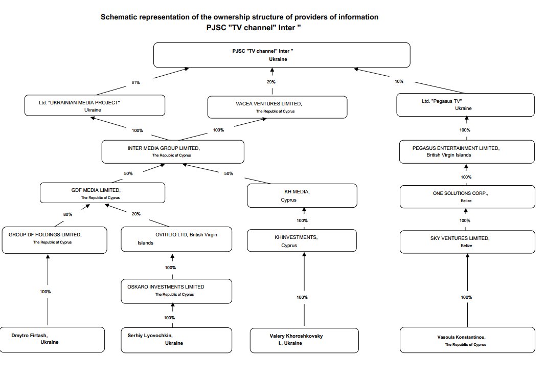 1- The most watched TV channel in Ukraine is called Inter. In 2016 the ownership structure was as follows: